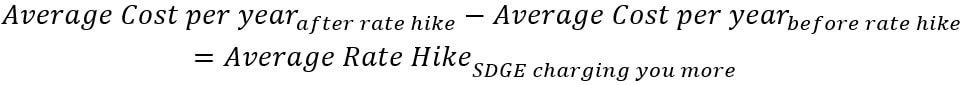 To calculate how much SDGE raised your electricity bill, we did the same procedure with the cost of electricity before the rate hike, and then found the difference.