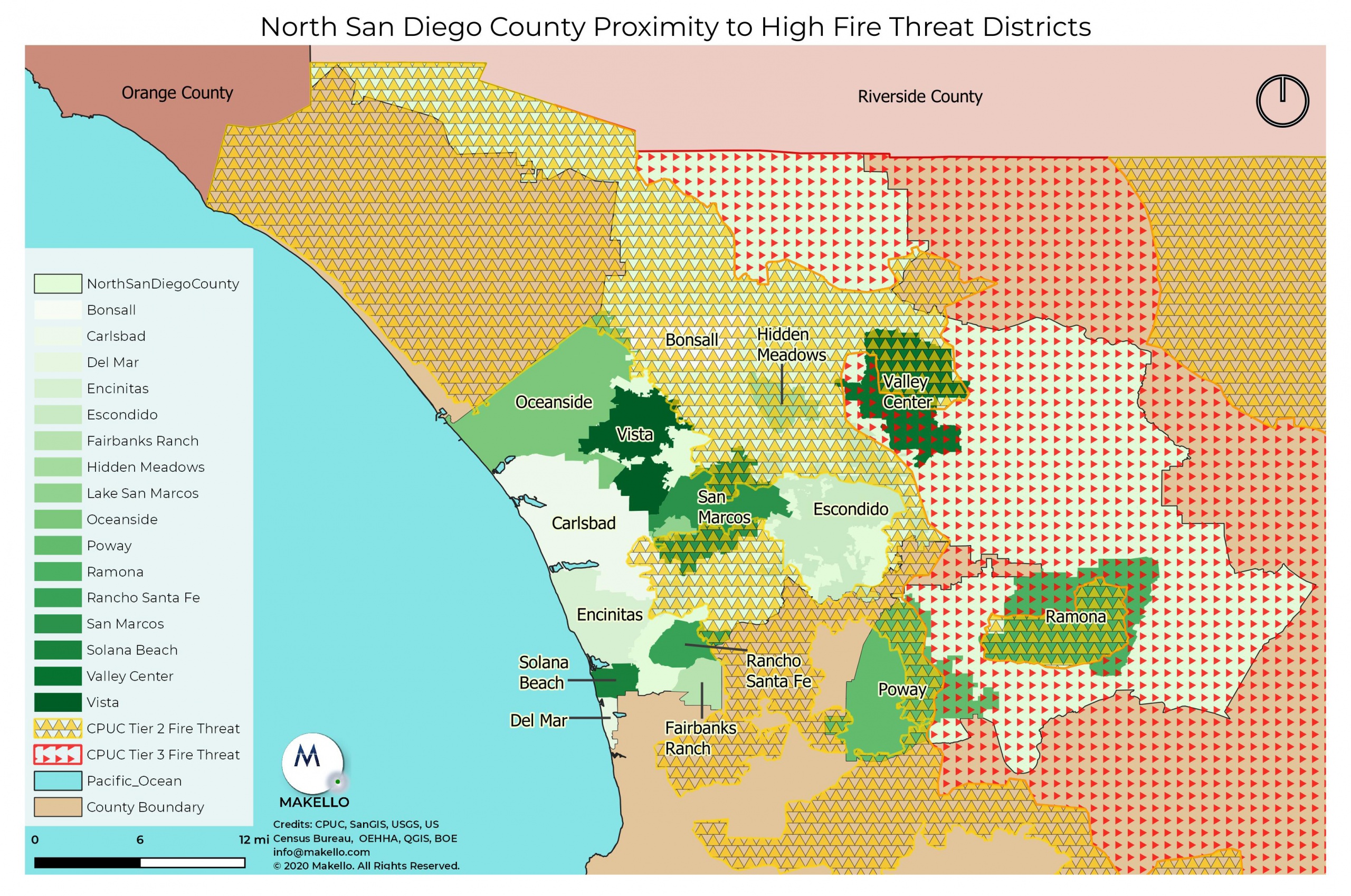 Oceanside has many areas with medium to high pollution scores and low incomes as calculated by CalEnviroScreen. The pollution scores could indicate a population vulnerable to pollution related issues. High rates of dust and pollution particles may increase the spread of viruses, worsening the COVID-19 crisis in communities with already low defenses. Additionally, some parts of the area lie in high fire threat districts. These environmental qualities could qualify some residents for rebates and incentives for Solar Power, Plug-In Vehicles (and EV Charging), or Energy Storage installations, lowering the cost of these installations.